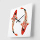 Horloge Carrée Poisson rouge, blanc et noir Koi