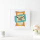 Horloge Carrée Rectangles tranchées Crème turquoise orangée Moyen