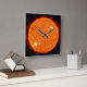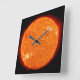 Un reloj de pared cuadrado con una imagen real del Sol.