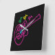 Horloge Carrée Rétro Rock and Roll Neon Sign Guitar and notes