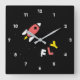 Rétro, pop, création colorée d'une Rocket, horloge Carré. Thème spécial de couleur rouge, jaune et blanc, avec un style d'art simple mais élégant. art numérique original de Raphael Studio - "Rocket". Style pop rétro, design unique.