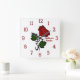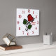 Horloge Carrée Rose rouge avec nom chiffres rouges