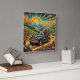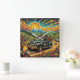 Folk Art Road Trip Embarquez pour un voyage musical avec cette impression d'art populaire inspiré. Un camion vintage occupe le devant de la scène sur une route sinueuse, entourée de terriers qui jouent des banjos et des guitares. Les teintes chaudes du soleil levant ou couchant projettent une lueur magique sur les montagnes et les nuages. Les pommiers, les citrouilles et les tiges de maïs créent un sentiment d'abondance automnale. Cette oeuvre d'art complexe, remplie de couleurs vives et de motifs complexes, est parfaite pour les amateurs d'art populaire Image créée à l'aide de l'IA.