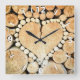 Cute clock with image of round wood pieces and a wood heart. Great for your country cabin or vacation home.