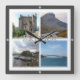 Vous y trouverez le souvenir de vos vacances. Cette catégorie contient l'horloge murale Carré de nombreux endroits en Écosse. (SCT005 ÉCOSSE, L’île de skye, horloge murale Carré). Amaze amis et parents avec les souvenirs uniques de votre voyage. Essaie-nous ! #LeoPepeDesign - europe écosse royaume-uni, collage mosaïque potpourri, île skye portree waterstein head, sky bridge château dunvegan, leopepedesign, voyage photo tourisme, cadeau gadget Carré Wall Horloge