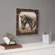 Beautifully painted portrait of a golden sorrel quarter horse with flaxen mane sporting a fancy western pleasure show bridle and saddle. Réaliste artitic artwork created from an original oil painting by equine and wildlife artist Crista S. Forest, then digitally edited to give it an aged or photo effect in warm sepia tones, just right for decorating your rustic or ranch country. Accented with a matching brown background.