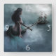 Horloge murale acrylique de 10,75 po x 10,75 po avec une belle image de sirène donnant sur un bateau de pirates. Artiste inconnu. Conseil : Pour rendre les mains plus visibles, optez pour les mains grises. Voir l'ensemble de la collection Shipwreck Clock dans le DÉCOR | Section Horloges.