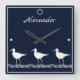Horloge Carrée soft navy sand Pipers on white PILLOW
