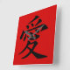 Symbole d'amour chinois noir sur un arrière - plan rouge vif. Les demandes de couleur sont acceptées si votre couleur préférée manque.