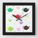 "Teatime Teapot Clock" Une jolie horloge de cuisine décorée de théières. choisissez rond ou carré. *