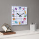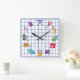 Voici mon horloge spéciale conçue pour les quilteurs avec mes outils et fournitures préférés pour le quilting, le patchwork, la couture et la broderie : aiguilles à coudre, bobines de fil, coussin à épingles avec épingles, bobines, dé à coudre, ruban à mesurer, ciseaux, coupon de tissu, cutter rotatif, machine à coudre et étiquette sur un tapis de coupe auto-cicatrisant. Un cadeau attentionné pour vous-même ou cette personne créative spéciale dans votre vie.