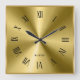 Horloge Carrée Texture métallique Bordure d'or Numéros romains