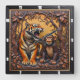 Horloge Carrée Tiger Monkey Jungle Carved