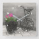 Reproduction ancien porte-fleur de vélo rempli de jolies fleurs rouges horloge murale. Photographie de Susan en noir et blanc d'âge vintage avec couleur partielle. Cliquez sur Personnaliser pour ajouter du texte. Contactez-moi pour toute question ou demande de design. S'il vous plaît visitez mon magasin chez Smilin' Eyes Treasures pour voir plus de cartes de design de fleurs, d'animaux, de la nature et d'arts numériques et des cadeaux pour la maison et le bureau. Les liens vers tous mes magasins se trouvent sur ma page Profil.