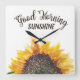 Beau tournesol d'été jaune et marron sur horloge murale blanche avec un texte de calligraphie mignon, "Bonjour soleil." Contactez-nous pour obtenir de l'aide sur la personnalisation ou pour demander des produits correspondants.