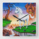 Unicorn fantasy acrylic wall clock. Fantasy art magical Unicorn Kingdom. Magical fantasy scene of a noble unicorn overlooking its kingdom. Airbrush and water colour illustration. Watch out for other great products featuring this original design.