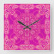Horloge Carrée Unique Motif rose violet rose clair
