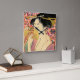 Utamaro : Kushi (comb), environ 1785 Kushi (comb). Vintage Japanese Print shows a bust portrait of a woman holding a transparents comb in front of her face. Color woodcut by Utamaro Kitagawa, 1780's
