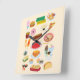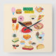 Une illustration vectorielle de différentes variétés de nourriture telles que barbe à papa, hamburger, crevettes frites, gyoza, pizza, frites, hot-dog, beignet, corndogs, gelée, ramen, lasagne, sundae, glace, muffin, nachos, mochi, sushi, sandwich, boule de riz et taco.