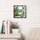 Cette horloge murale carré vibrante rayonne "Summer Vibes" avec son design gai avec un grand tournesol, deux papillons bleus, et des accessoires de plage essentiels comme des lunettes de soleil et des tongs colorés. Deux rafraîchissements tropicaux viennent compléter le décor, apportant une atmosphère ludique et lumineuse à tout décor de maison.