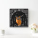 Horloge Carrée Whimsical Boho Owl & Tropical Monstera Leaf