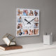Horloge Carrée White Grey Bois Custom Photo Collage Élégant