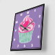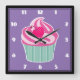 Art graphique / illustration d'un cupcake rose délicieux avec des tourbillons de glaçage sur le dessus et une jolie cerise à pois rose chaud. La base est à rayures vertes et blanches.