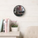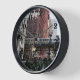 Decorate a living space with this modern style wall clock with black numerals that features a photo image of the elevated. commuter loop train in downtown Chicago, Illinois. Select your clock style along with hand color.