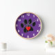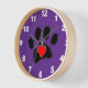 Joli chien noir empreinte de patte et dessins au coeur rouge. Version arrière - plan violette. Horloge murale décorative personnalisée. Tout ce qui est vu est imprimé. aucune couture réelle ne sera utilisée dans la fabrication. Idée cadeau pour les femmes qui aiment les chiens.