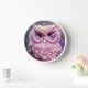 Horloge Chouette rose bouffante aux coeurs