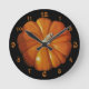 J'ai créé ce motif citrouille à partir de l'image dans ma peinture acrylique intitulée, Citrouille et poire. Changez la couleur arrière - plan sur ces horloges thématiques d'automne.