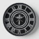 Beautiful silvery roman numerals with a silver cross.