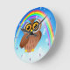 Horloge colorée avec des chiffres pour les enfants avec un joli arc-en-ciel et des bulles, et un chouette. Les enfants adoreront cet adorable petit personnage animal !