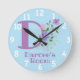 Le design présente Monogram & Name avec Fleurs de chaque côté dans un style pastel couleur eau. Le nom de l'exemple est Darcee. Horloge de chambre d'enfant, Horloge de chambre d'enfant. Changez le nom comme souhaité pour toute personne ayant un nom commençant par D.