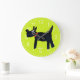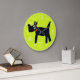 Les Chiens écossais sont souvent exposés dans la peinture colorée de l'artiste John Dyer. John a pris l'un de ces chiens écossais peints et l'a appliqué à cette horloge funky murale pour créer une grande pièce amusante pour tous les amoureux de les chiens scotty.