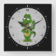 Horloge murale carrée avec l'illustration de l'alligator ou du crocodile illustré par maxi harmonie