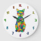 Une peinture mignonne de minou d'arc-en-ciel sur une horloge avec des nombres rainbowy.