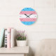 Horloges aux murs ronds avec drapeau de fierté transgenre à rayures bleues, roses et blanches, motif rayées
