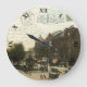 Nostalgie Cartes Postales Clocks by Terri Meyer "Turning Back the Hands of Time" Combinant histoire et fonction, cette horloge a été conçue à partir d'une carte postale vintage par l'artiste Terri Meyer. Les notes écrites à l'arrière de la carte décrivent les moments de renseignements personnels et le cachet postal valide l'emplacement et le délai de la carte postale. Cette horloge représente le Carré du marché à Piqua, Ohio, en 1912.