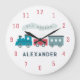 Cette horloge mignonne "en route" de train à vapeur pour la chambre de garçon/enfant/nurserie comporte le nom de l'enfant sur un fond blanc avec un train à vapeur en bleu et rouge. Personnalisez-le selon vos besoins. Vous pouvez trouver des produits assortis dans ma boutique.
