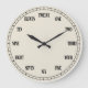 Une horloge murale traditionnelle, mais elle montre des mots au lieu de chiffres.