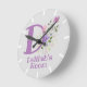 Horloge Des Enfants. Le design présente Monogram & Name avec Fleurs de chaque côté dans un style pastel couleur eau. Le nom de l'exemple est Delilah. Changez le nom comme souhaité pour toute personne ayant un nom commençant par D.