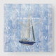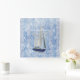 Cette horloge à thème nautique peut être personnalisée avec votre propre nom ou autre texte. Un voilier royal en bleu marine et blanc sur un arrière - plan bleu gris, accentué de chiffres romains blancs. Votre choix ou arrondi en deux tailles ou carré. Créé en partie avec l'art d'Angela Wenke sur resaleclipart.com