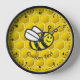 Caricature souriante d'abeilles volantes sur un arrière - plan sans soudure de ruche d'abeilles. Texte personnalisé.