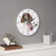 Un portrait d'un beau foie et un chien blanc Springer Spaniel est juste derrière un joli bouquet de fleurs hivernales sur cette horloge. Derrière l'image se trouve un tourbillon de fausse parties scintillant d'or. Les chiffres en or foncé et les marqueurs en forme de diamant autour du périmètre rendent l'horloge facile à lire. Parfait pour quiconque a perdu son coeur à cause d'un espion.