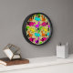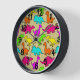 Cette horloge murale a un design novateur de dinosaures éparpillés dans le design.