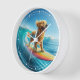 Il faut aimer un Golden Retriever surfant sur les vagues et souriant tout le long ! Horaire amusante pour votre décor sur le thème de la plage. Surtout pour les amateurs de Golden et de plage !