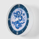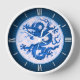 Horloge Dragon chinois, bleu d'Indigo et blanc