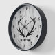 Cette horloge présente des bois de cerf noir sur un arrière - plan en fausse planche de bois pour un look de ferme rustique