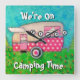 Horloge de camper rose amusant qui peut être customisé à dire ce que vous voulez au lieu de "Nous sommes sur le temps de camping" Ajouter ceci à votre camper lorsque vous allez glamping!